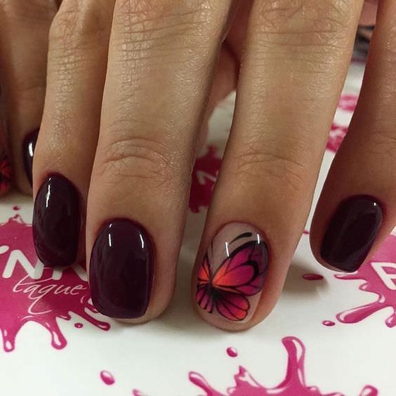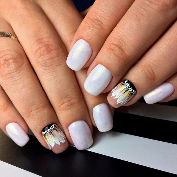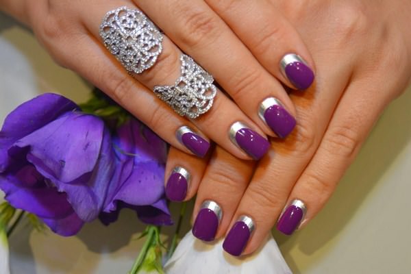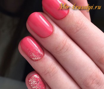 سوف تبدو أظافر القمر أنيقة للغاية على الأظافر القصيرة. سوف تعطي تقنية أومبير الأصالة اللطيفة للأظافر ، مع انتقال مثير للاهتمام من لون إلى آخر. في هذه الحالة ، يمكن جعل إصبع واحد أو إصبعين عاديًا أو مزينًا بأحجار الراين ، مما سيضيف أصالة حارّة إلى أظافرك. سوف يجذب مانيكير معدني مذهل وجهات نظر الآخرين ، ولكن يجب أن تتوافق صورتك ككل معها.