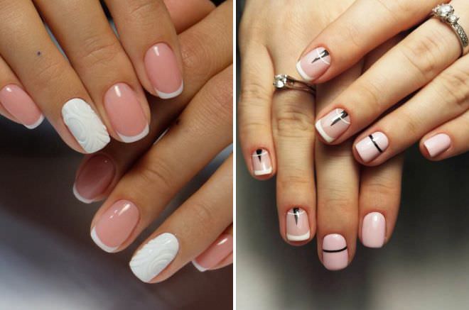 من بين أساليب مانيكير الموضة ، التقنيات الكلاسيكية مثل التصاميم الفرنسية والأظافر القمرية هي في المقدمة ، فهي نوع من الأساس الذي يجعل من الممكن تحقيق الأفكار الأكثر إثارة للاهتمام والأناقة. عند تنفيذ هذه التقنيات مانيكير ، وغالبا ما تستخدم الراين ، microbeads ، البريق.