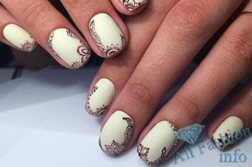 الأصالة والأصالة تعطي الأظافر جميع أنواع الأنماط والرسومات الجميلة.منذ وقت ليس ببعيد ، كانت تعتبر الرسومات امتياز مانيكير مساء. اليوم ، تقدم الموضة لاسي وأنماط عرقية ونباتية مجردة لكل يوم. الشيء الرئيسي هو أن يتم الجمع بين تصميم الأظافر مع تصميم الملابس.