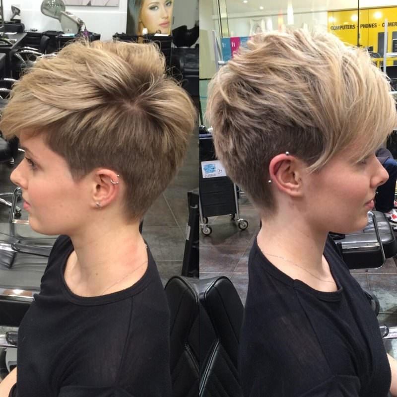 Der Haupttrend der nächsten Saison wird ein Elf mit einem rasierten Tempel sein. Trotz der Kühnheit eines solchen Haarschnitts verleiht es Ihrem Bild Eleganz. Diese Lösung verlängert den Nacken optisch und vergrößert das Haarvolumen. Sie ist perfekt für Besitzer eines ovalen Gesichts.