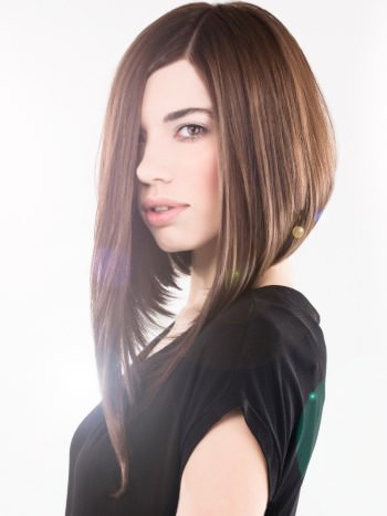 Graduated bean visually gives the haircut volume and density. This is the most popular haircut option, made using multilayer haircuts technology. It is great for owners of thin and sparse hair. The main volume falls on the crown and back of the head.
