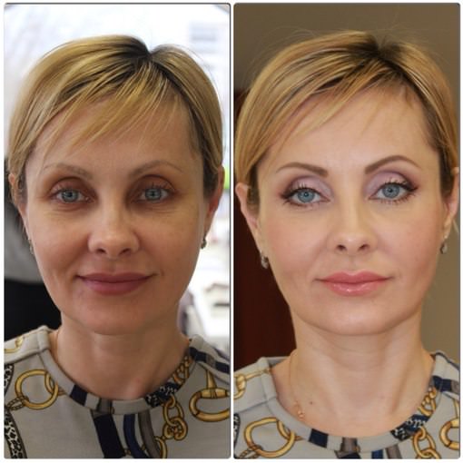 - The second feature of makeup for women after 40 is the use of blush. Even if you had never resorted to them before, now you will have to reconsider your views a little. Properly selected blush will give your skin a healthier look and make it less dull. The main thing here is not to overdo it, so that later you do not look like the heroine of the well-known fairy tale “Frost”.