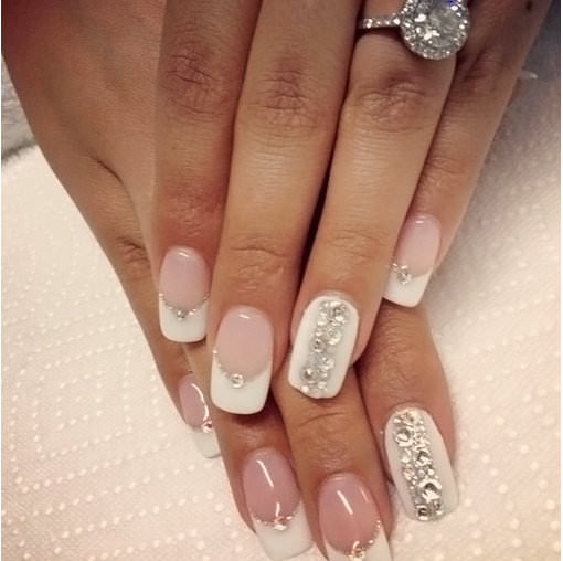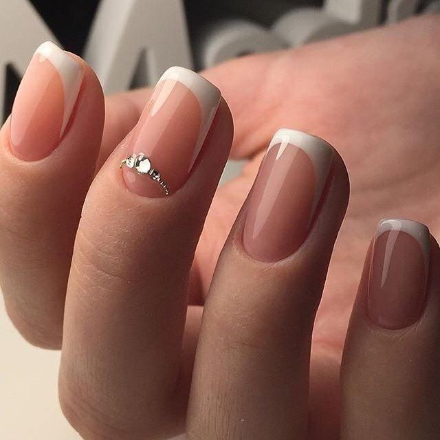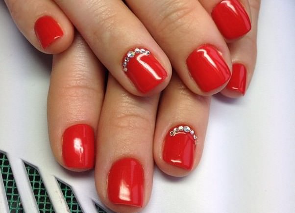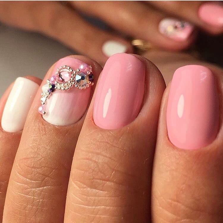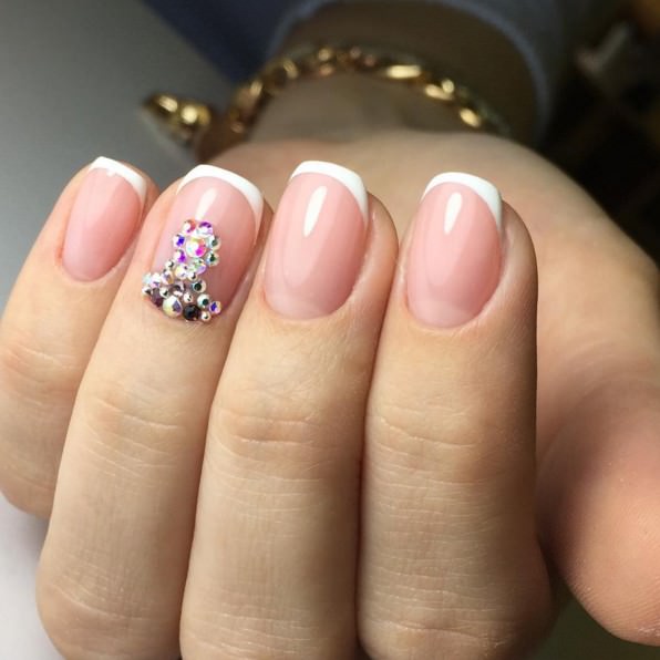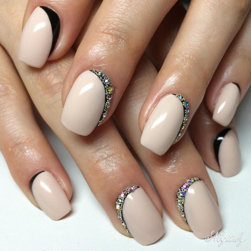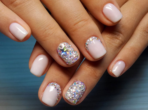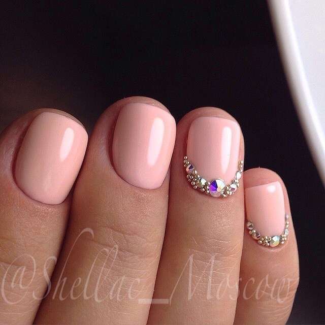 - A manicure with rhinestones for the most part is a holiday manicure. It is perfect for parties and celebrations. In everyday life, it is better to avoid flashy designs, you can use a few small pebbles and your nails will sparkle in a new way.