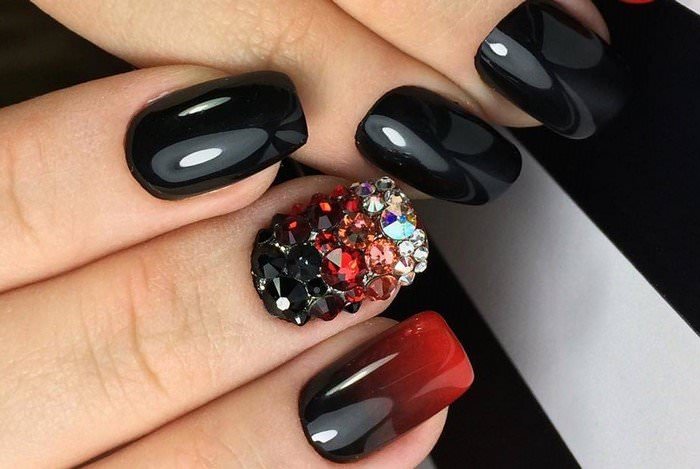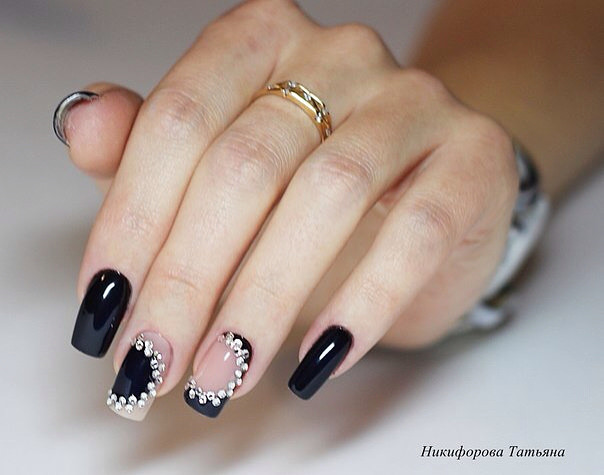 And finally, a few mind-blowing ideas for manicure with rhinestones + instructional video.