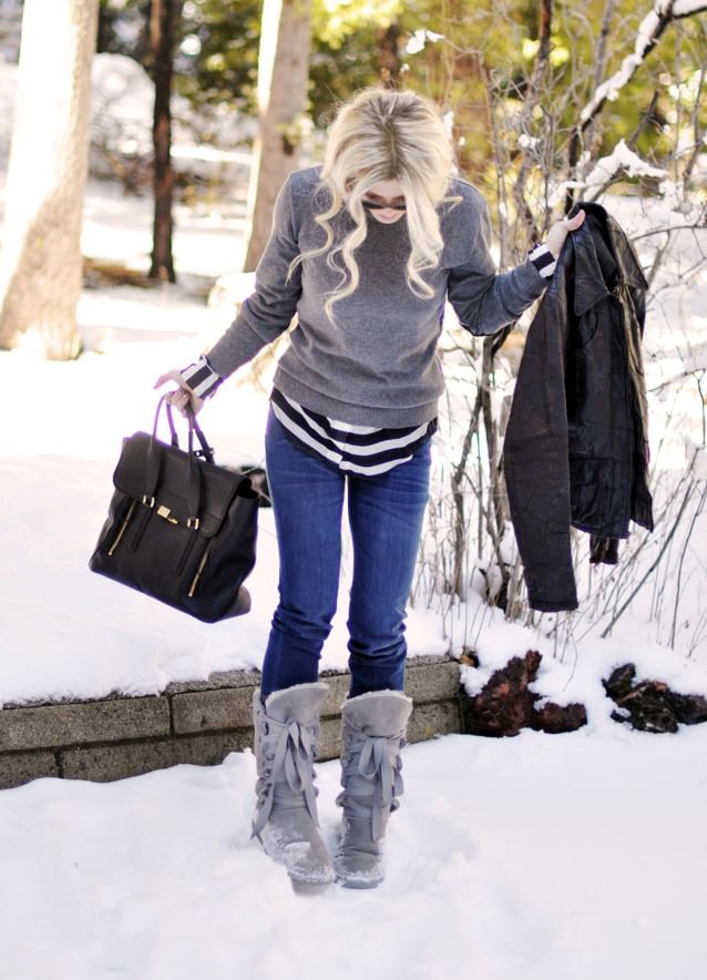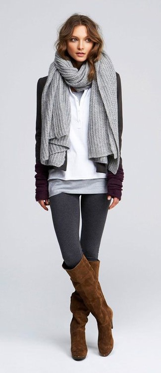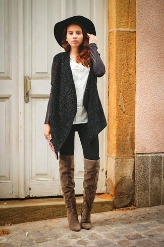 Going to work? Put on your favorite skirt and blouse with a cardigan, and neat suede boots will be the perfect look.