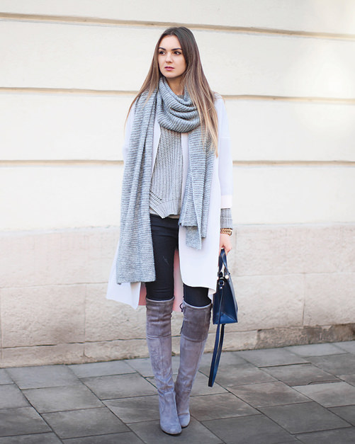 Gray suede boots are especially popular this season. And indeed, in the winter they look simply incomparable.