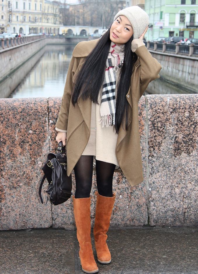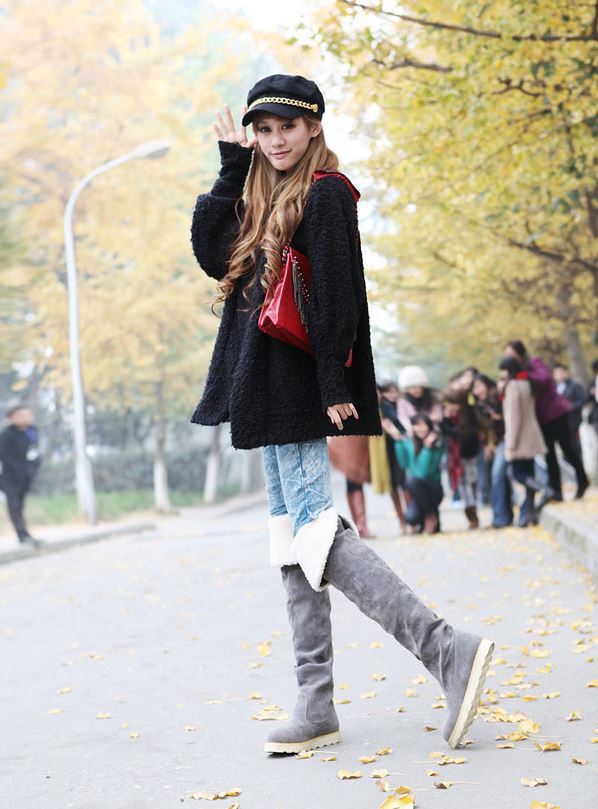 In winter, stocking boots look great with tight-fitting jeans, a sweater dress and a cardigan.