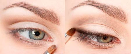 First you need to sharpen the pencil in order to draw a clear line. After we apply the foundation for the eyelid. With her help, he will last longer.
