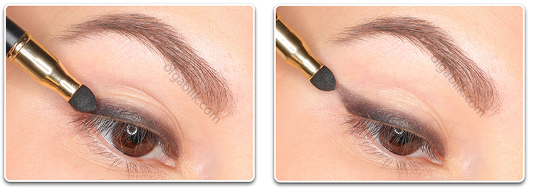 After that, we take the applicator and begin to shade the arrows drawn by us with gentle movements. If you overdid it a bit and rubbed the arrows too much, this can be fixed with cotton swabs by slightly tweaking the outline.