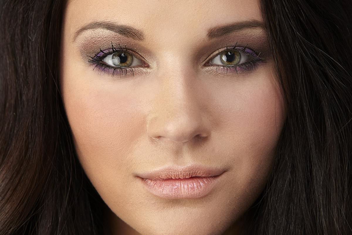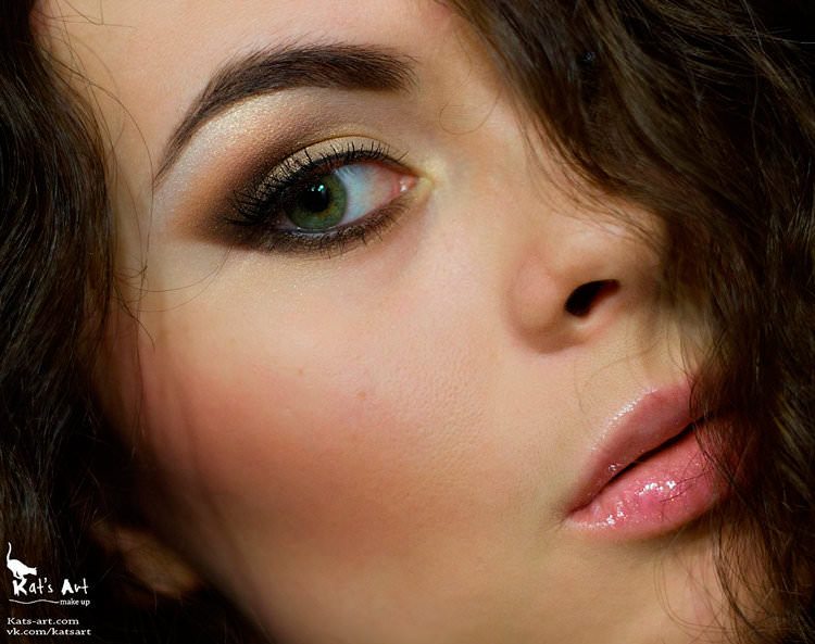 Green-eyed brunettes by nature already got this bright emphasis on the eyes. It remains only to emphasize it a little. The main thing is to avoid too bright shades. Ideal options for green-eyed beauties will be shades of brown, golden, prune colors. You can also add dark gray and light lilac tones.