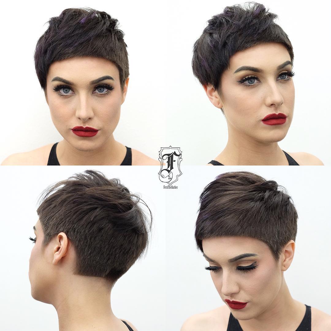 Pixie's haircut is also a big favorite of many women. It is mischievous and implies a huge number of all kinds of variations and variations of its performance: with bangs, without bangs, with oblique bangs, with a shaved temple, milled and even graduated. In this regard, there are many fantasies and variations on the theme of styling such a haircut.From the back, it can also look completely different (hair can be a little shorter or vice versa a little longer). In general, a wonderful haircut, implying a complete flight of imagination!
