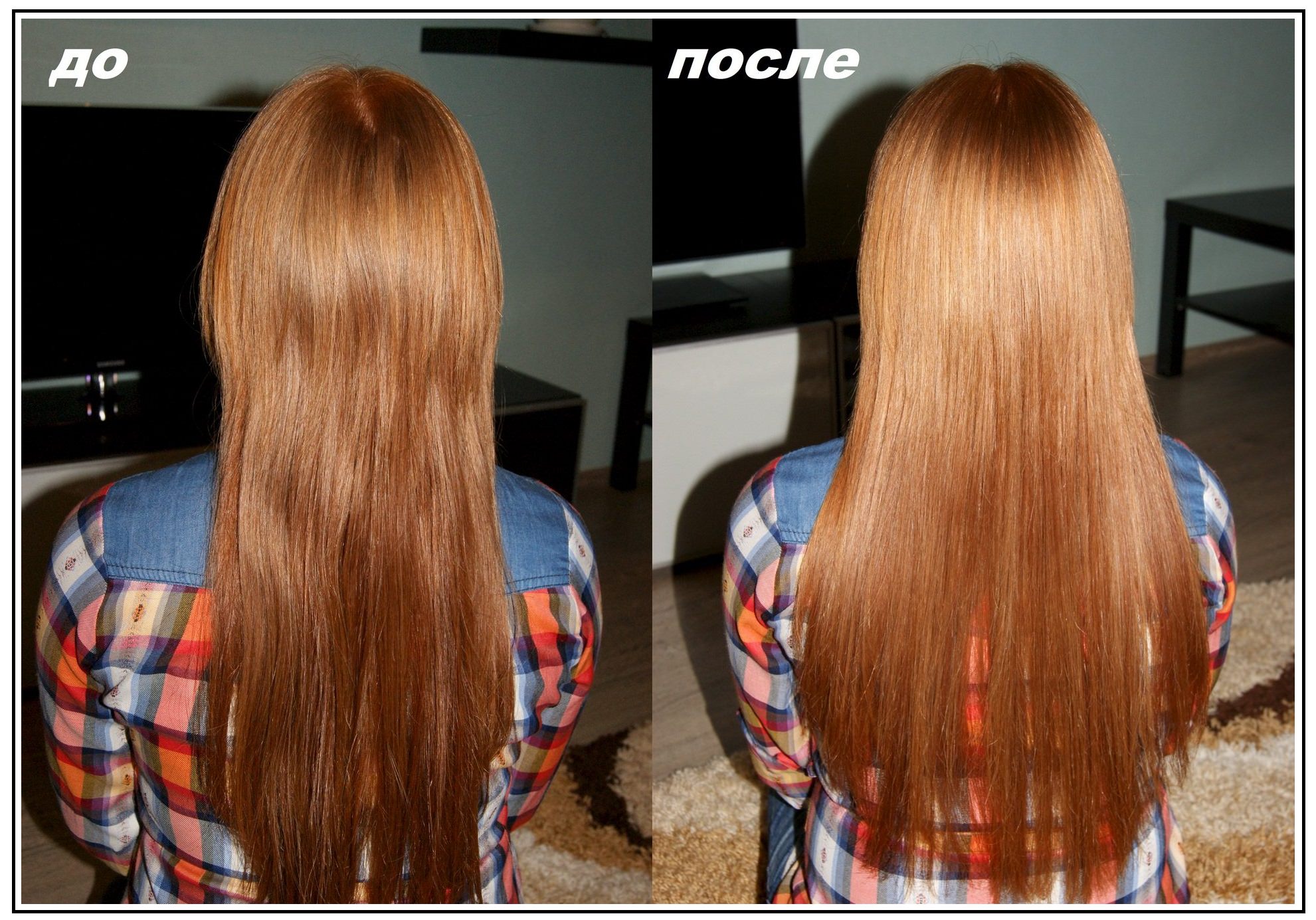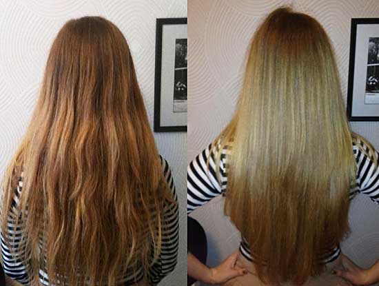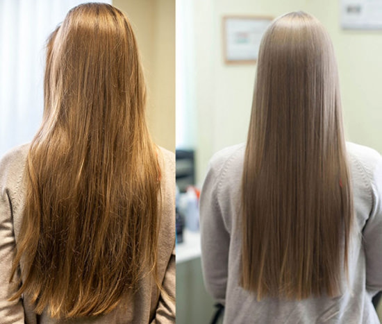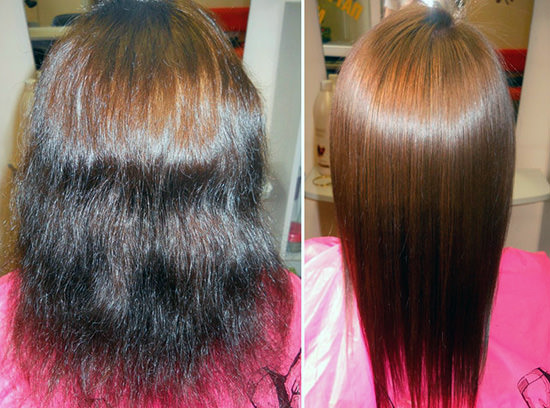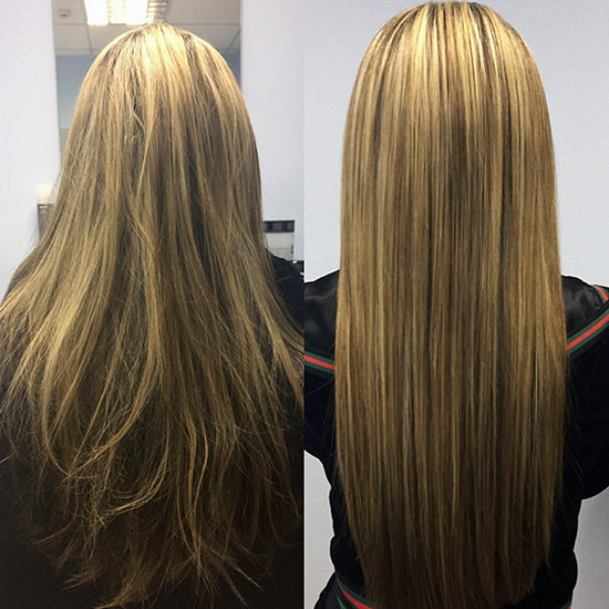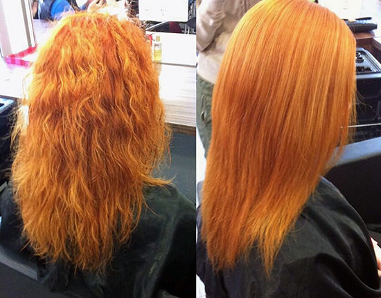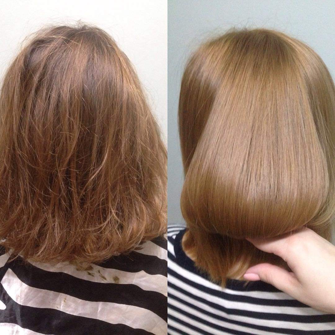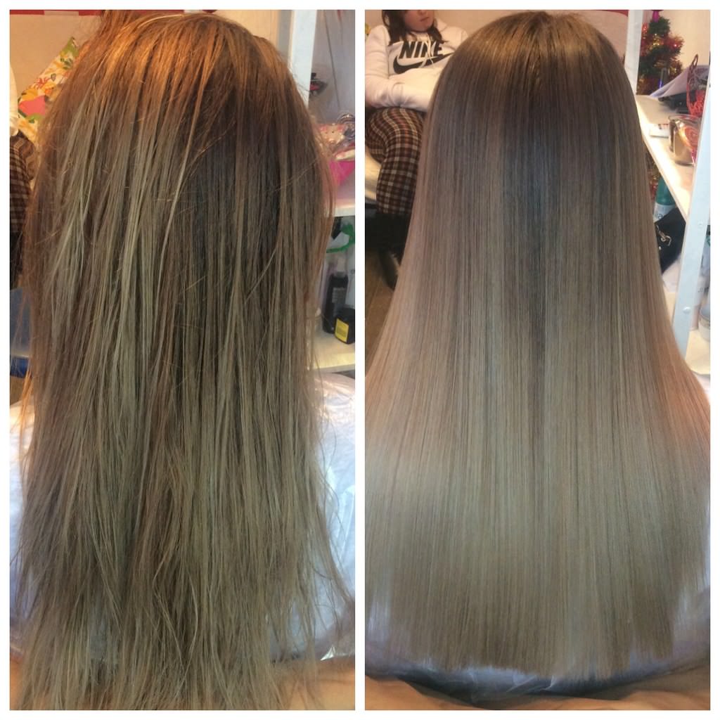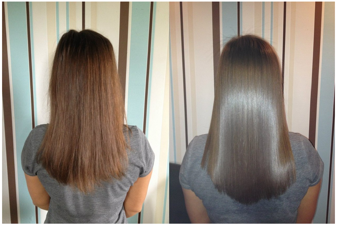 Lamination of hair before and after photos below.