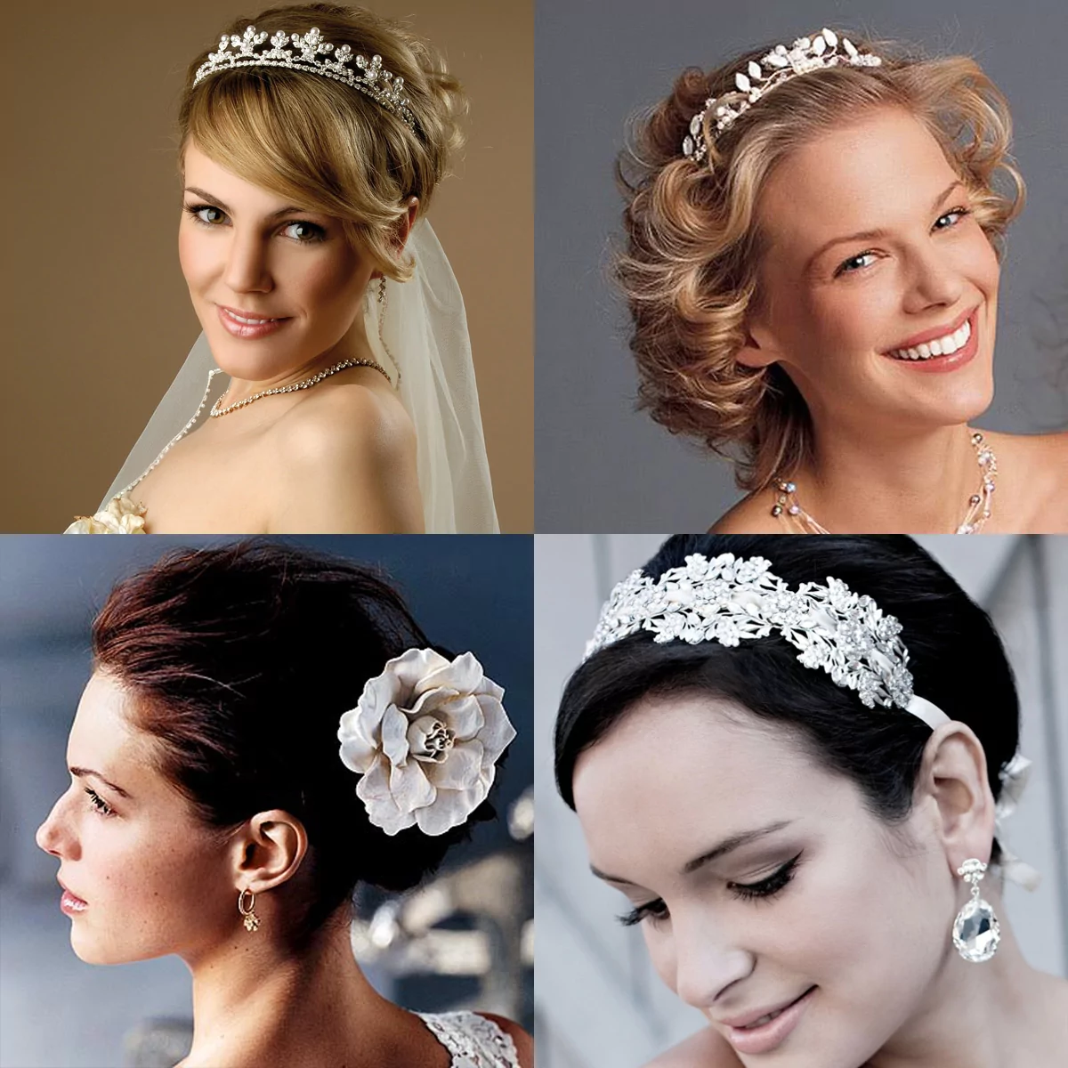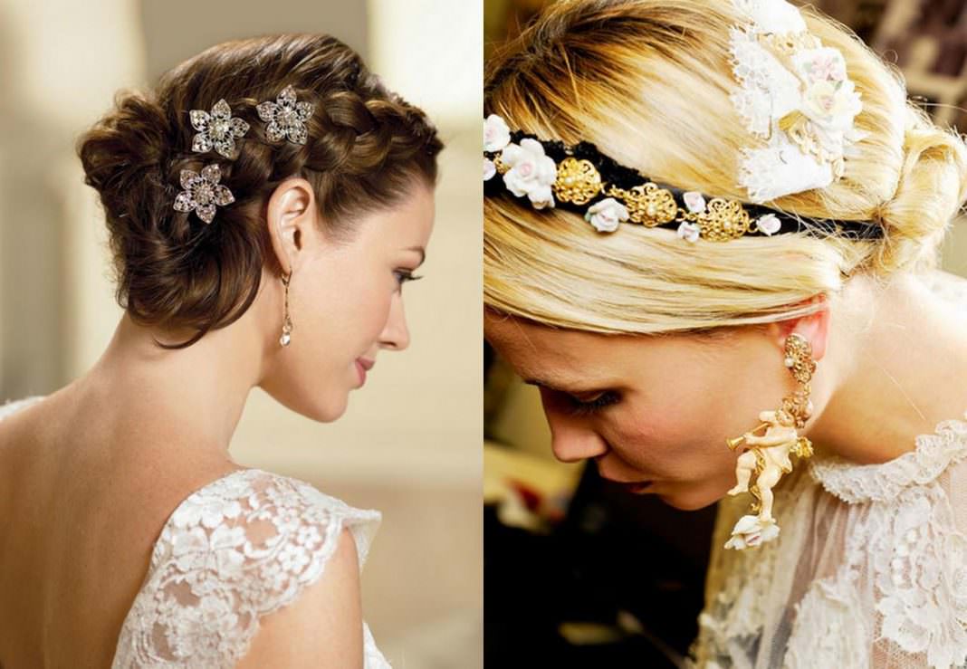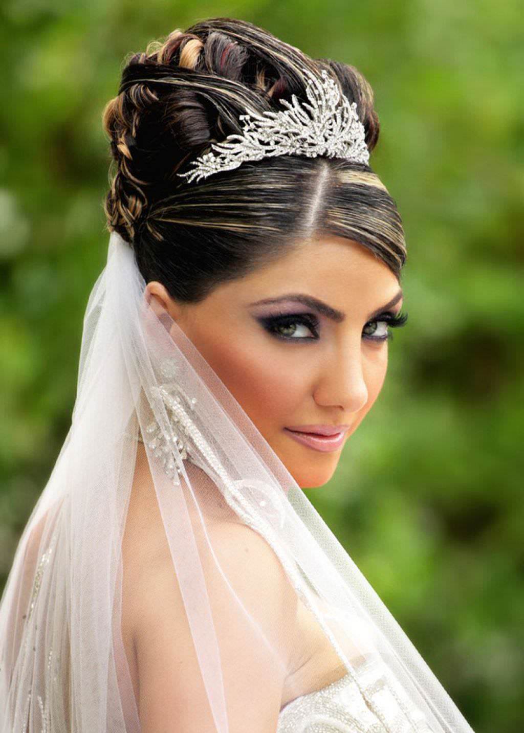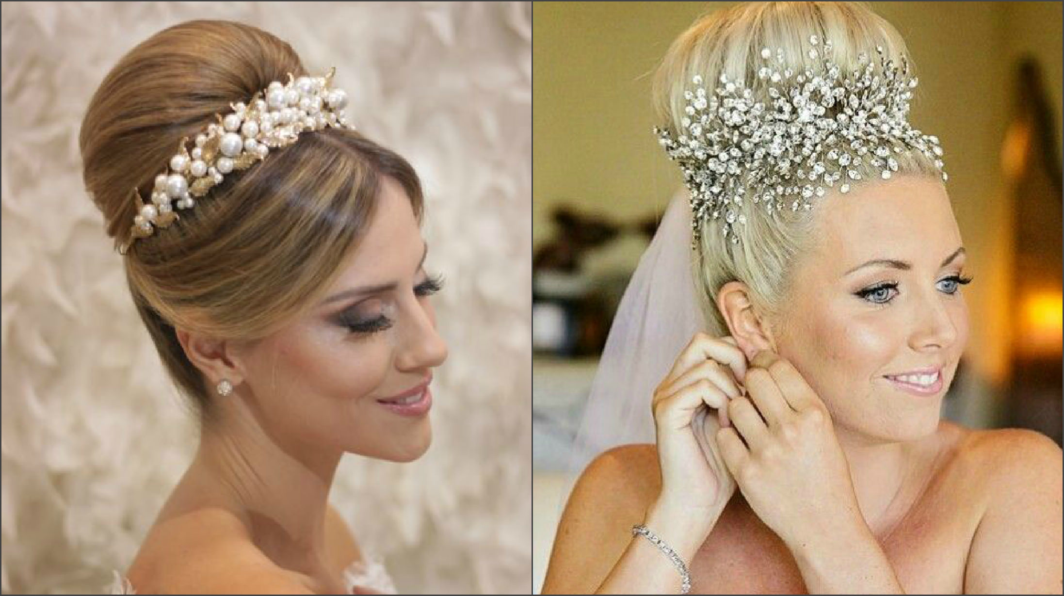 Wedding hairstyles with large jewelry and tiaras