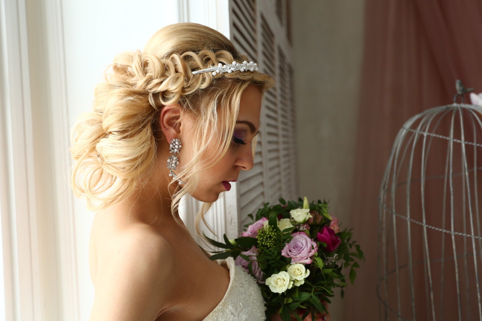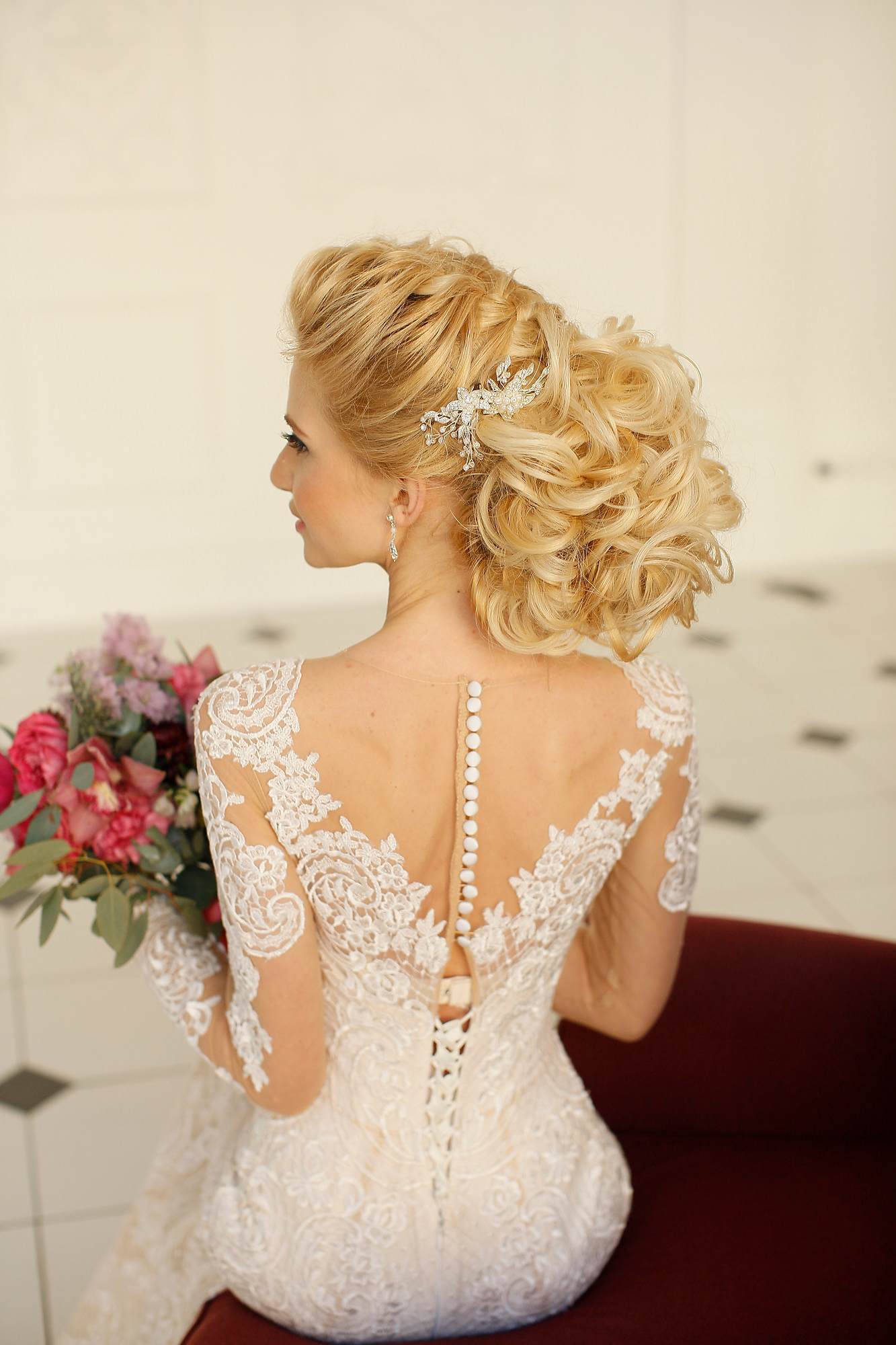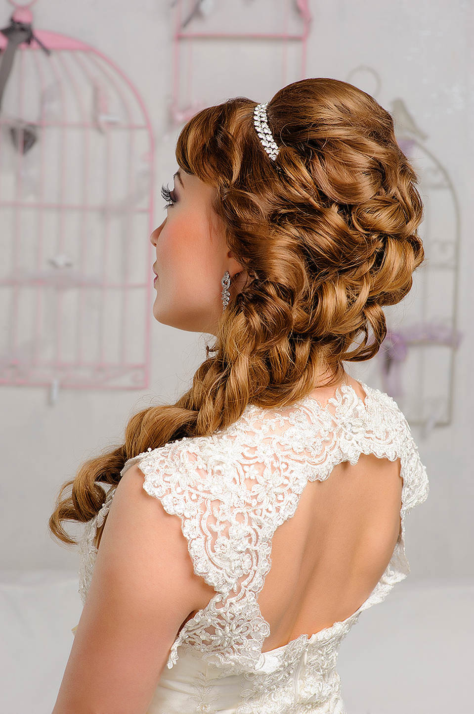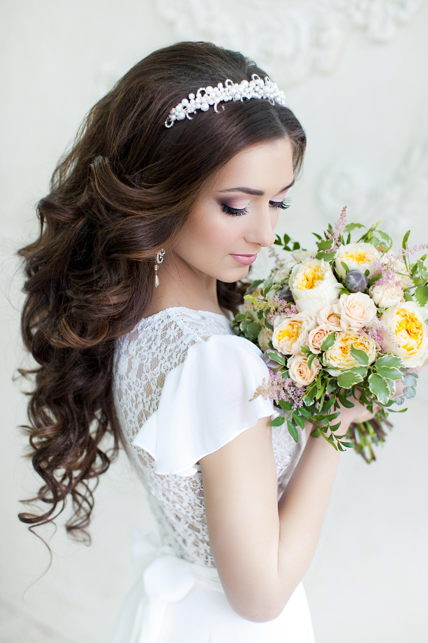 Wedding hairstyles with large jewelry and tiaras