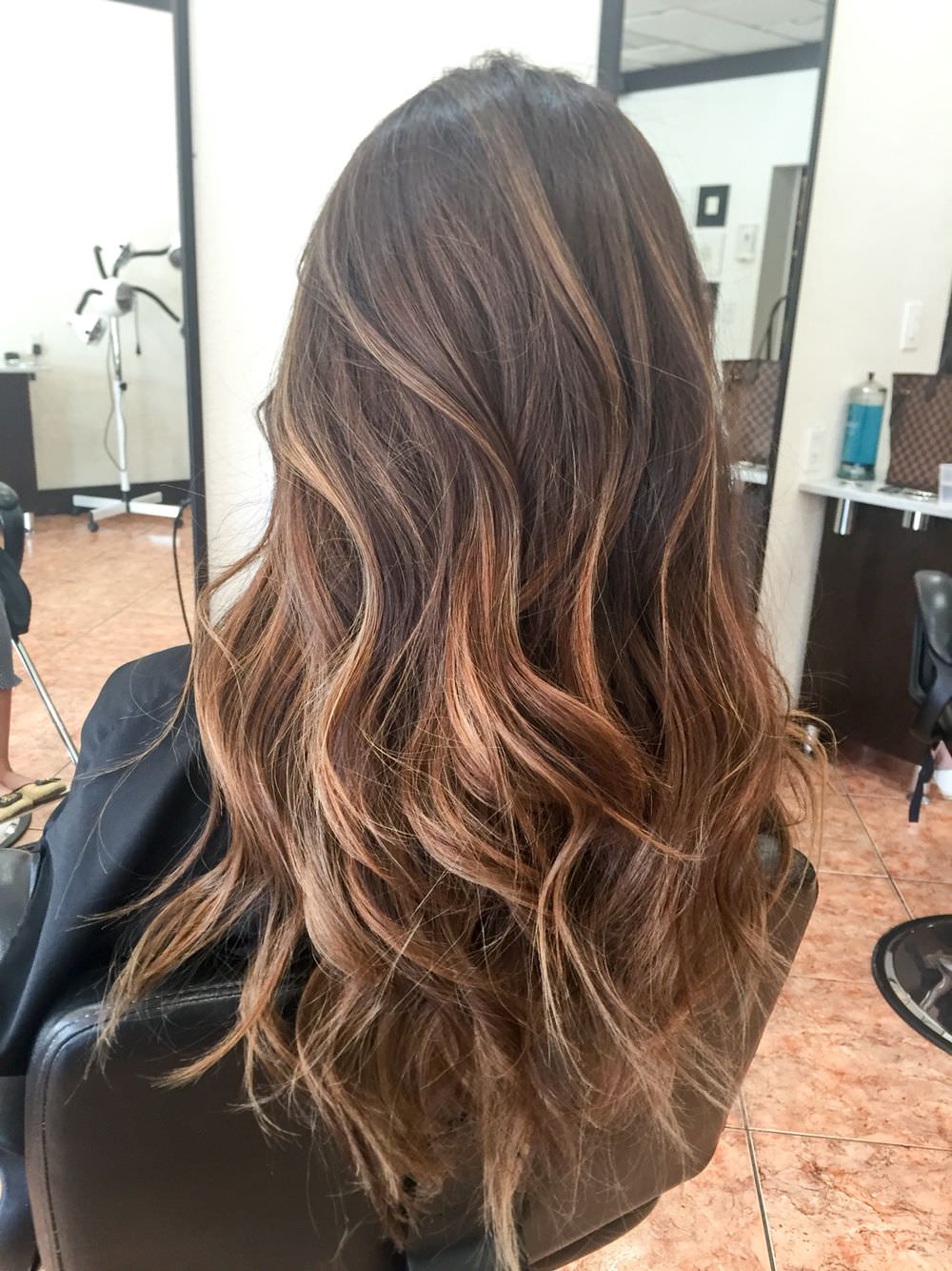 Another popular technique for dyeing long hair is shatush. The technique of stencil staining is inherently similar to ombre. Its main difference is that the transition from dark roots to light tips is not carried out over the entire volume of hair, but only on individual locks.