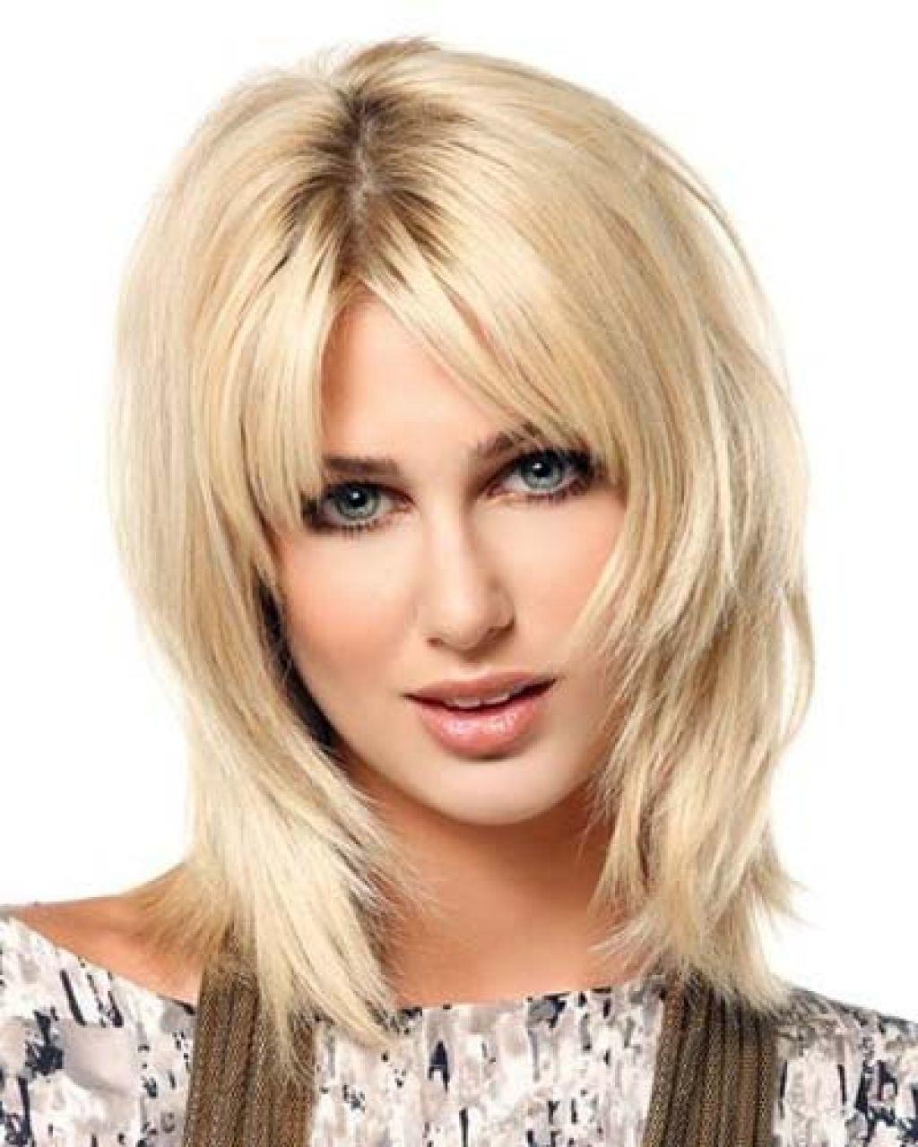 The average hair length suggests more options for styling a cascading haircut. To create a daily styling, you need to wash your hair, remove excess moisture with a towel, then lower your head down and blow dry with a hairdryer, directing it from the roots to the ends. Treat the ends of the dried hair with a small amount of foam or styling mousse and gently twist them in or out. Dry and fix the styling with hairspray.