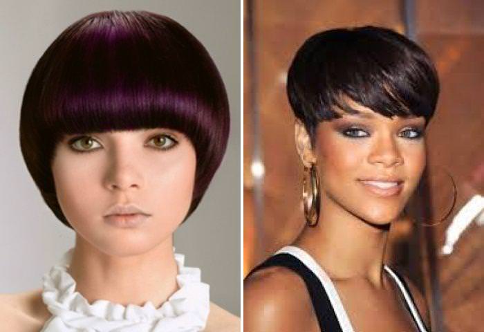 This streak got its name due to its appearance. Indeed, in form it resembles a hat worn on the head. A distinctive feature is the perfect haircut shape with clear line boundaries. However, modern interpretations of this haircut imply the presence of torn edges and asymmetries. Ideally, this haircut is suitable for women with a massive lower part of the face and a small upper one (the so-called pear-shaped type of face), since such a haircut can balance and balance all proportions. In addition, the cap looks good on a square and round face. But for women who sorely do not go bangs from a hat is better to refuse.