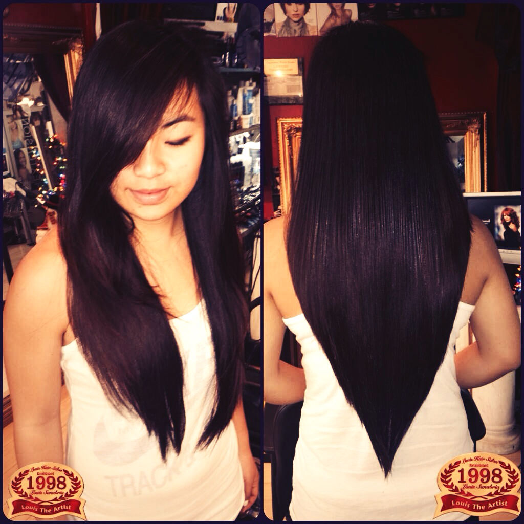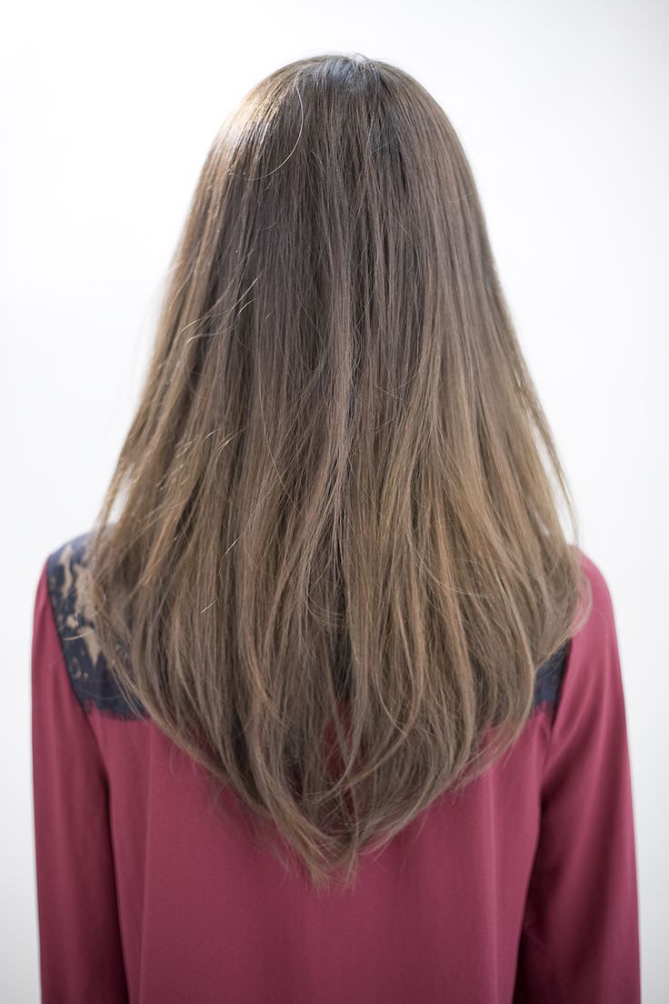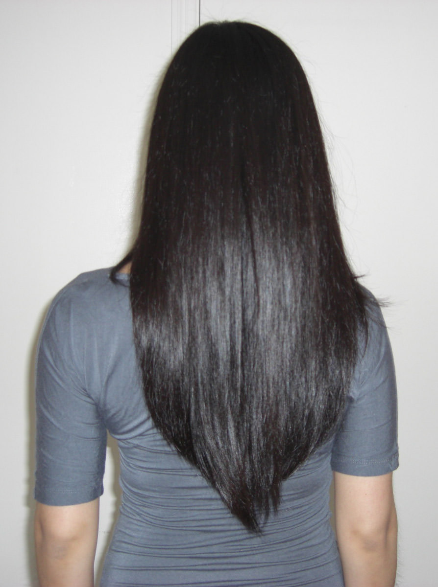 The second method of cutting involves a graduation technique that creates a very smooth cut line and literally a couple of layers also made very smoothly and again in the form of a pointed triangle.