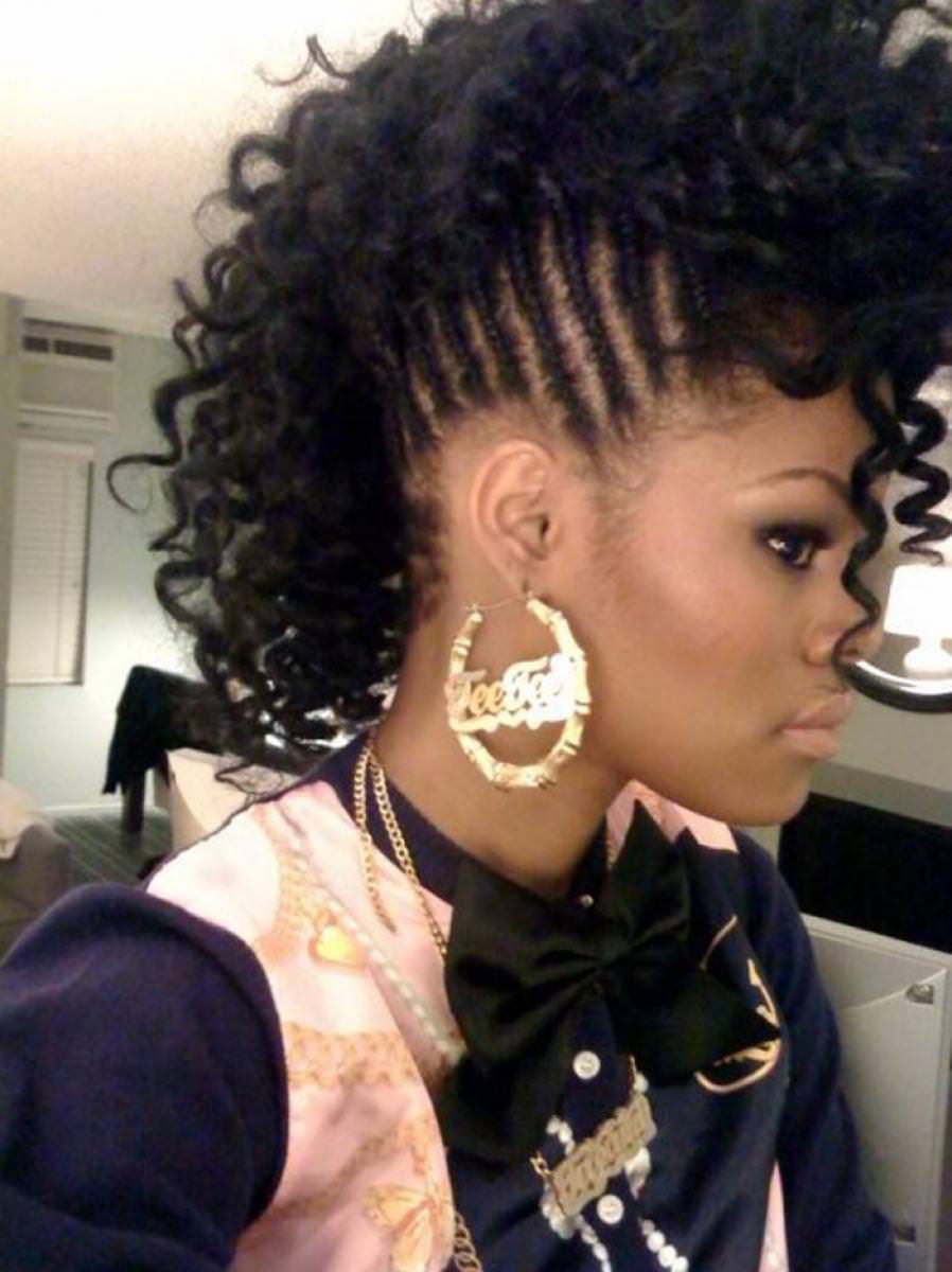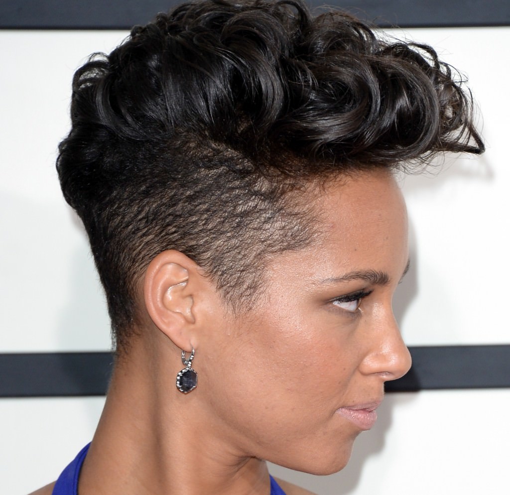 Iroquois on curly hair is done in much the same way as the classic version. The difference is only in the structure of the hair. Here they should be thick and curly. In addition, in the case of curly hair, it is not recommended to shave the side zones. it’s best to just cut them shortly. Iroquois is laid on curly hair with super strong fixation varnish. Curls at the same time look very romantic and even cute.