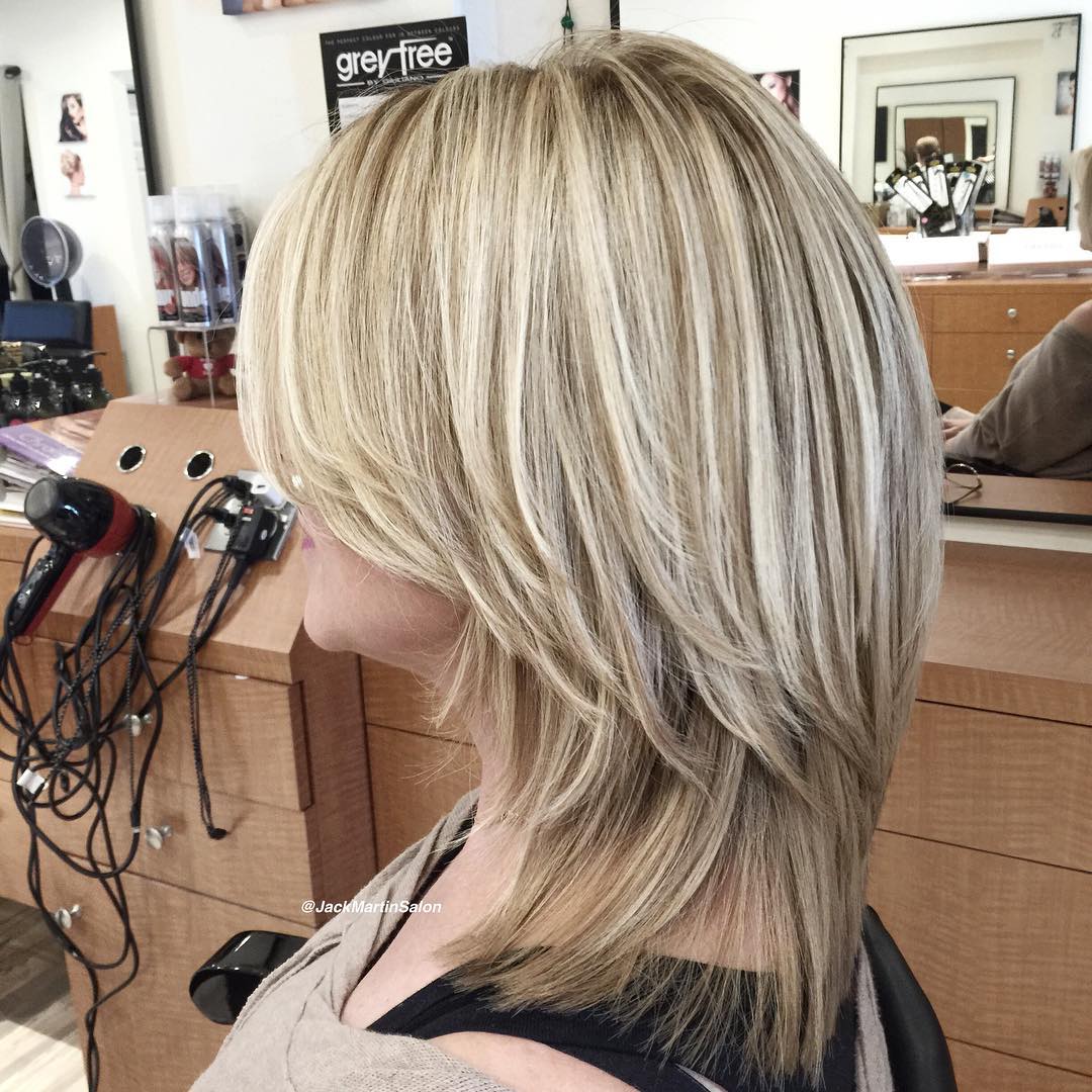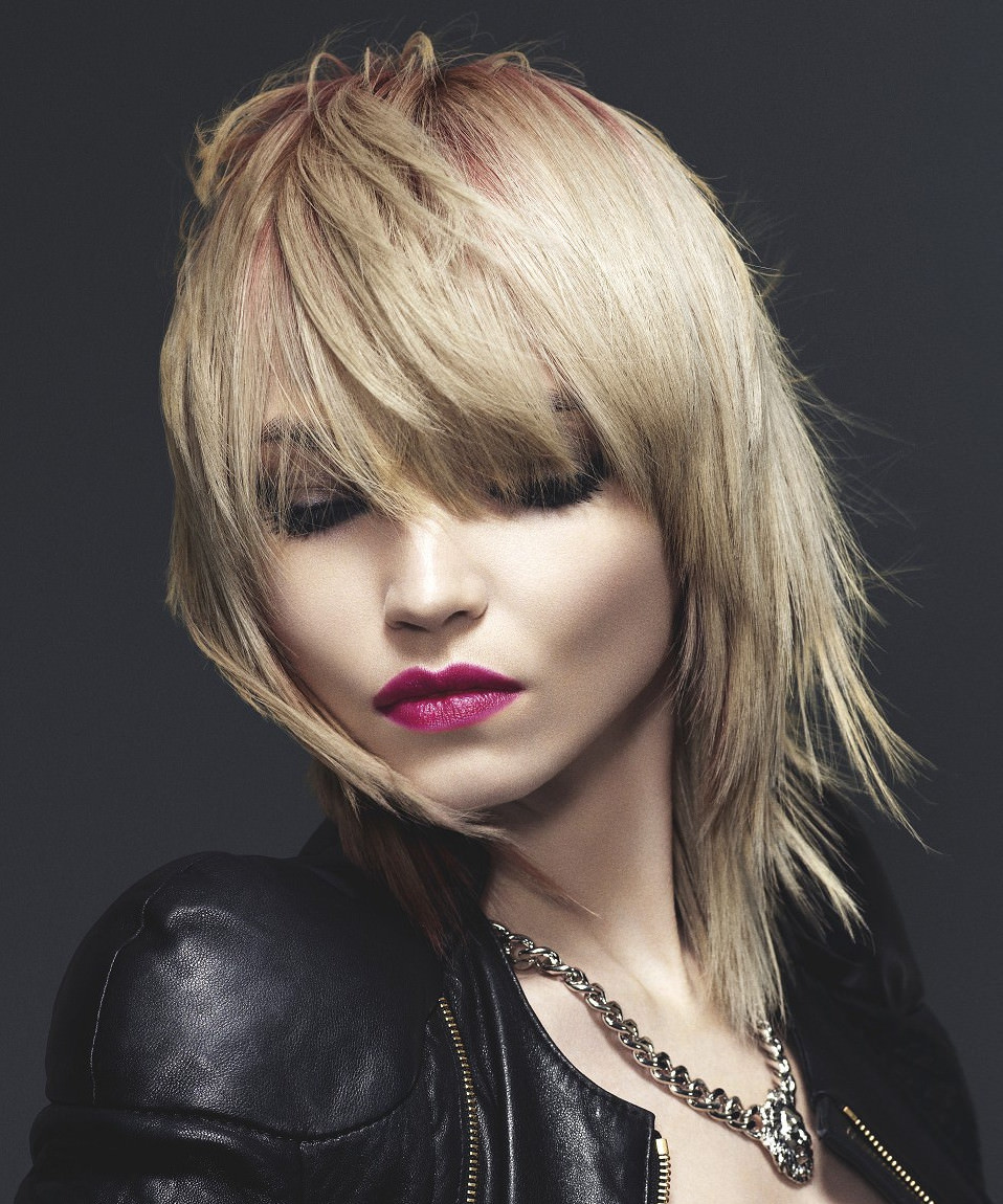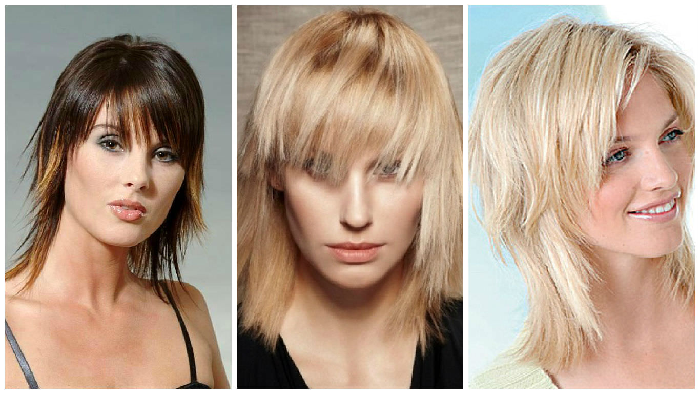 As for haircuts for medium hair, the previously mentioned hairstyles of a ladder or cascade, also optionally supplemented by a torn, asymmetric or elongated straight bang, will be the most advantageous option, as it always makes you younger. But resorting to this type of hairstyle, you should avoid excessive volume, which on the contrary will add a couple of years.