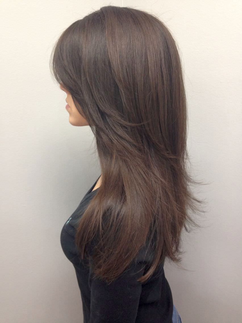 Long hair always remains at the peak of perfection, especially if you are the owner of a thick head of hair. Haircuts on hair of this length are not able to harm the image of any of the fair sex. For those who want to refresh the image, the best option for such a haircut is a cascade or ladder. In addition, such haircuts will add volume, which is beneficial for women with thin hair.