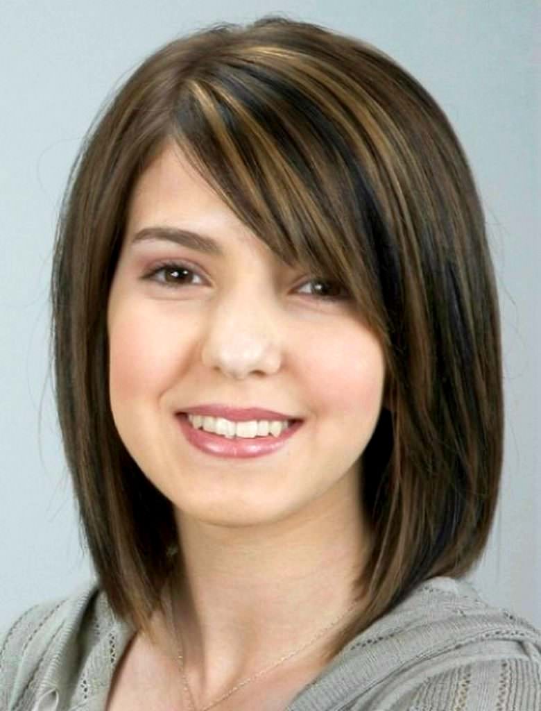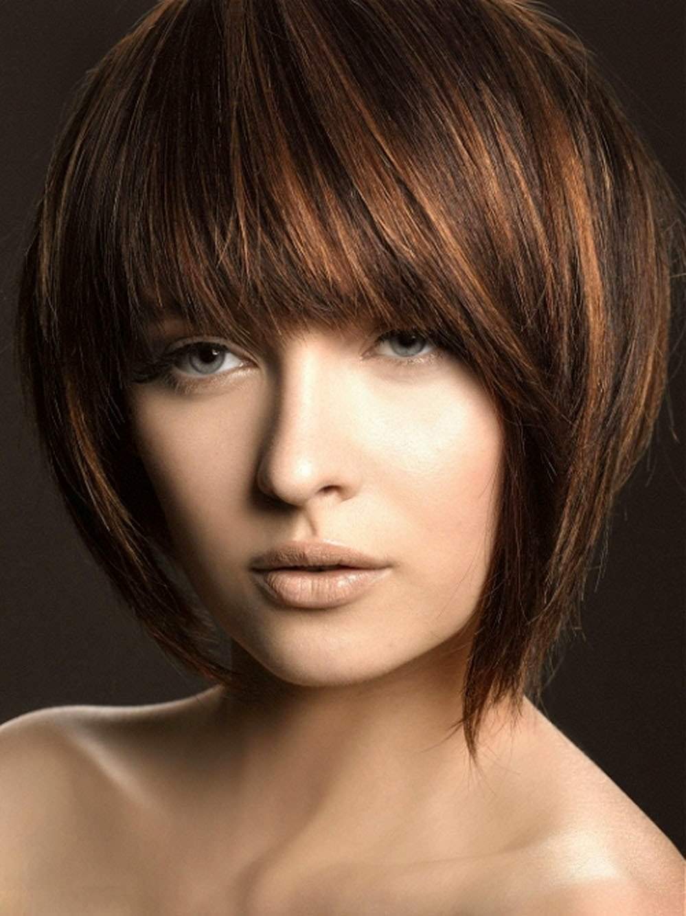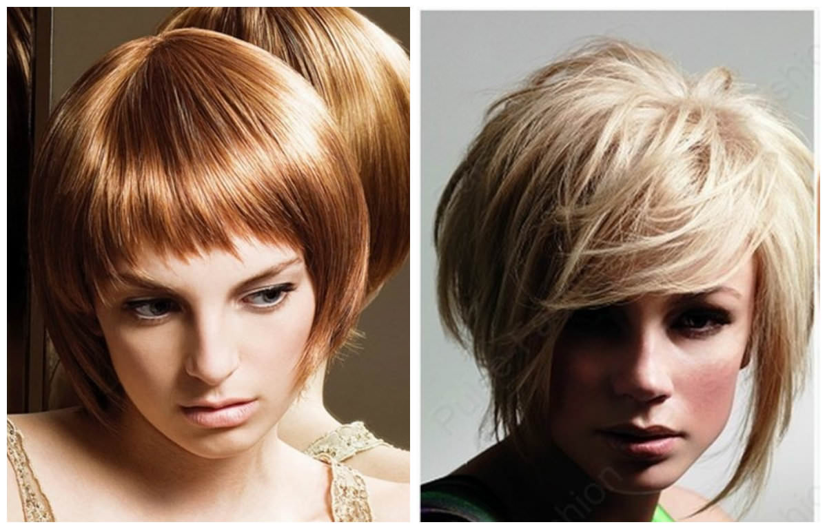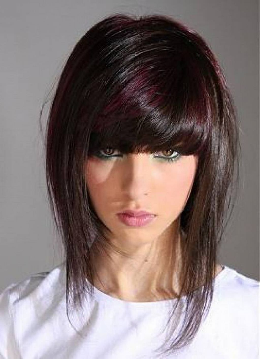 - Beauties with round face type in order to hide wide cheekbones, graded or oblique asymmetric bangs are suitable, while the design of the haircut itself also plays a role, it should not be round;