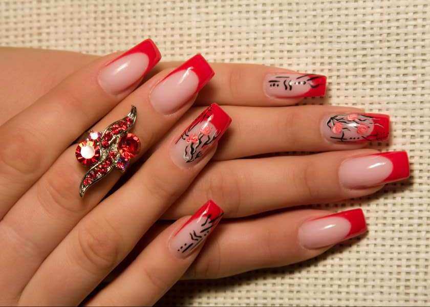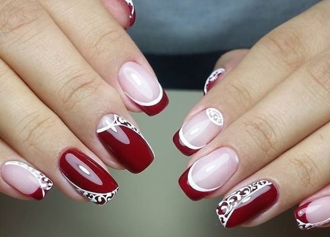 2019 year of experiments, replacing the classic white varnish with a rich red tint, you will get a fashionable creative French manicure.