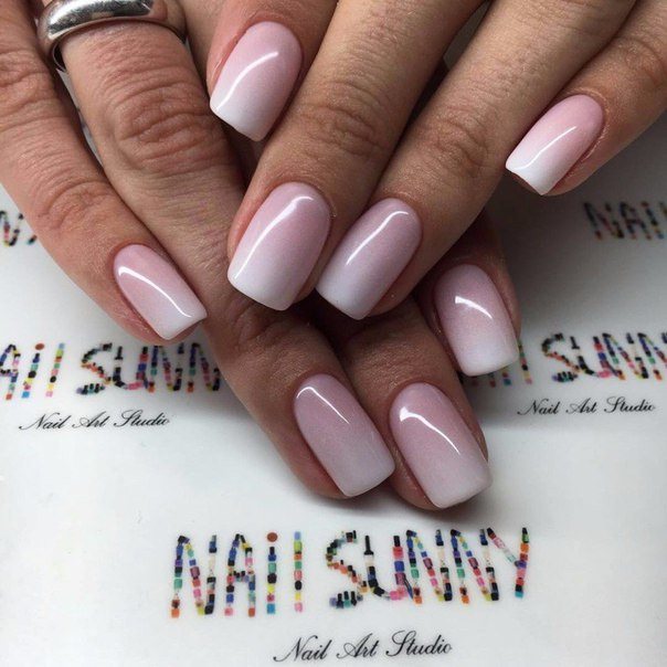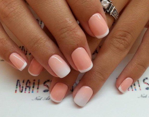 A stylish option is an ombre with a barely noticeable line between the base and the smile. Ombre on a matte French jacket will give nails elegance, and a glossy base will give the French ombre fashionable manicure an elegant splendor.