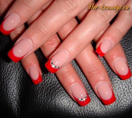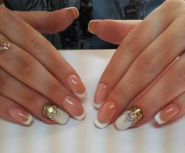 Acrylic sculpting is suitable for decorating French manicure.But you need to decorate the nails with a jacket with one thing: either rhinestones, or modeling, or sparkles, then the manicure will be gorgeous and at the same time gentle.