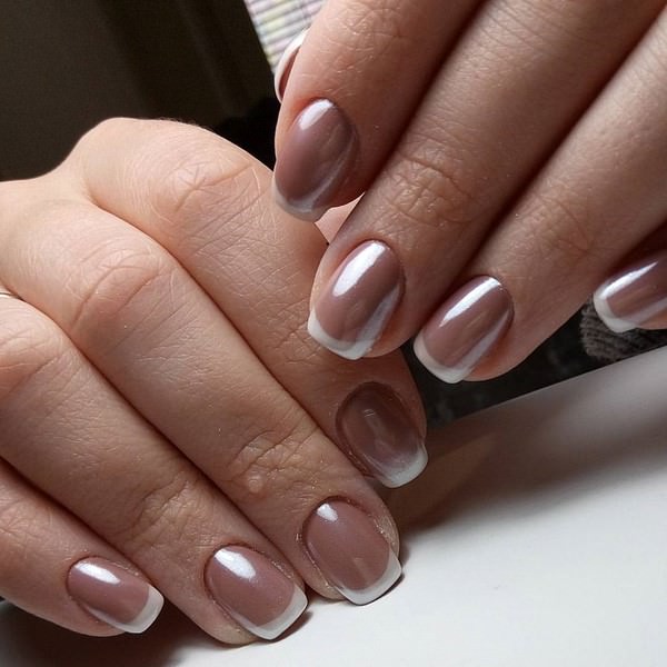 An unexpected version of fashionable French manicure was the shine of gold and silver. Gold and silver shades are ideal for fashionistas to create a festive outfit with an unforgettable image. Only one golden or silver stripe in a jacket can decorate your hands.