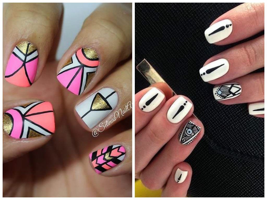 Art brush strokes, fancy mosaic - a couple of strokes are applied on a nude basis and the fashionable design is ready, choosing a combination of colors beautifully will result in a mosaic. Add to the chaotic strokes of gold, and you get an abstract manicure.