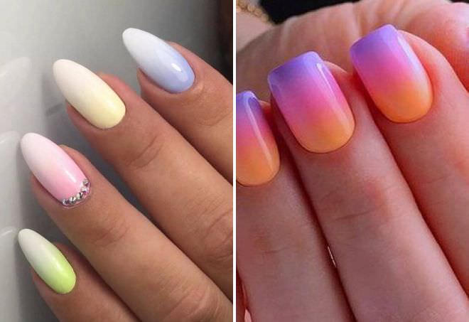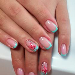 For summer manicure on short nails, it is better to use pastel shades or watercolor nail polishes, with a glossy finish in pleasant shades, but almost transparent.You will have a bright gentle manicure for short nails, not focusing on their length.