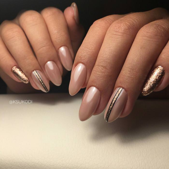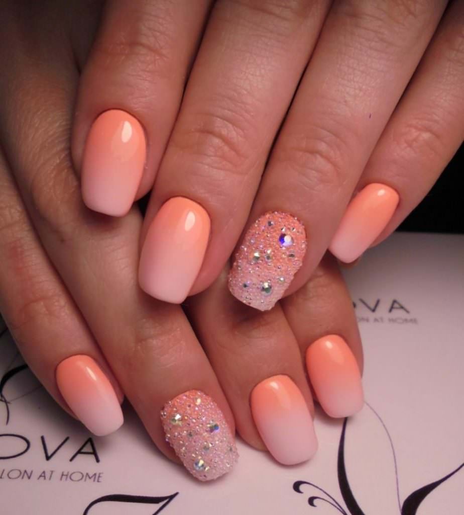 Your summer manicure can be made more elegant and refined by elements of gold and silver on a plain manicure or ombre manicure. Sequins, kamifubuki, rhinestones will help your nails shine, making them festive. The main thing is not to overdo it with the decor, decorate one or two nails - it will be gorgeous and gentle.