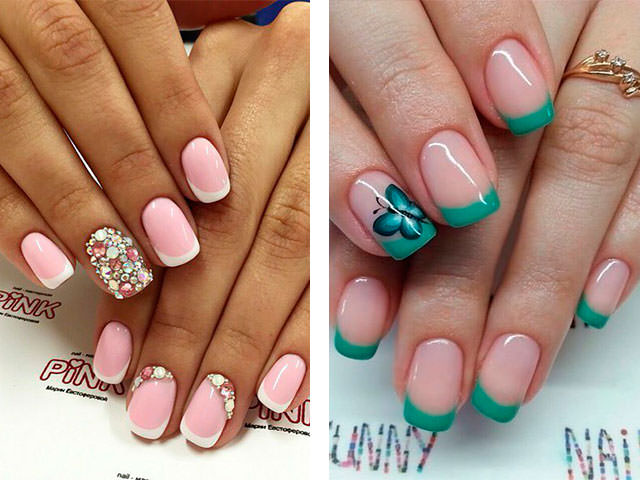 The look of the classic variety of nail coatings is French, the main part of the nail is painted in one tone, and the edge of the nail is highlighted in a different color of varnish. For the classic version, the basis is a shade of light beige with a white edge or the main transparent coating, but this summer options of any color are allowed.