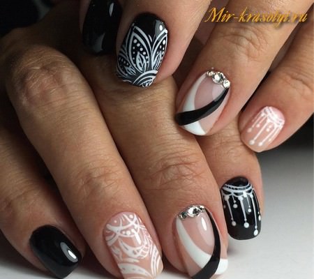 Nude is a manicure with which you can go to work and go to a party after work. The trendy design of the nude manicure will be a combination of beige and black shades of gel polish.