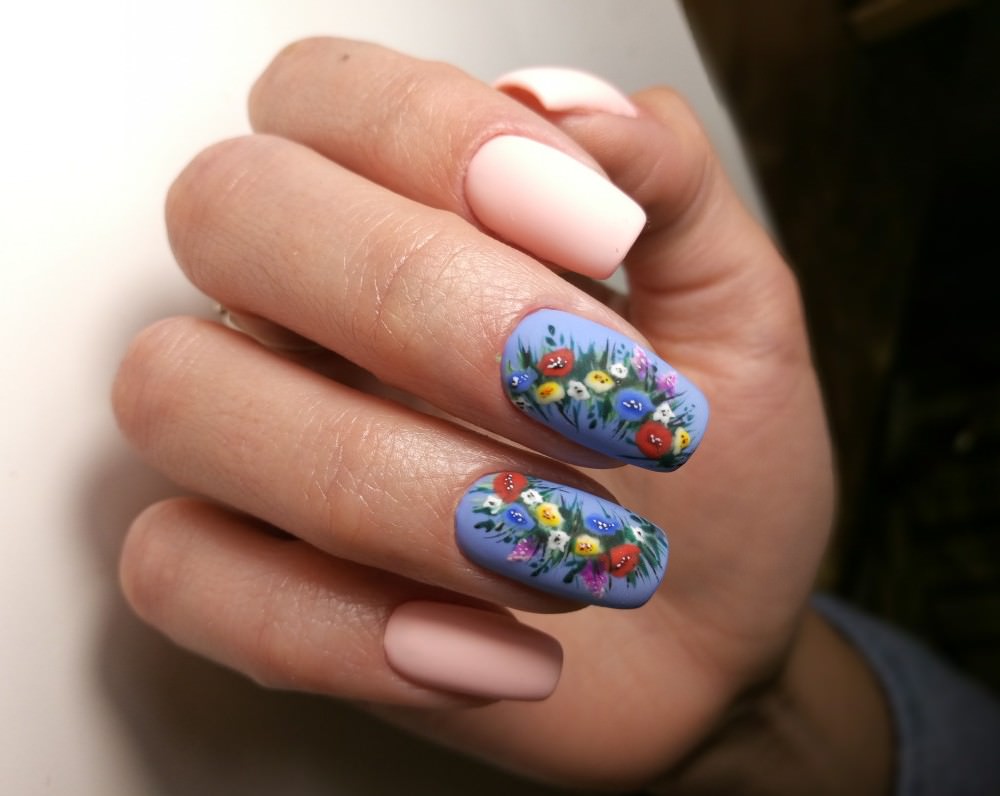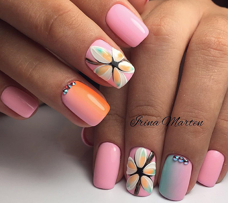 Flowers are the decoration of your dress, blouse. But your nails with flowers will look even better. Most of all, women fell in love with roses, daisies, irises, orchids and sunflowers decorating their nails.