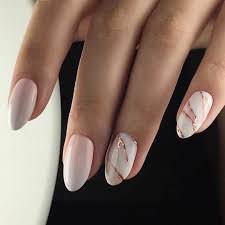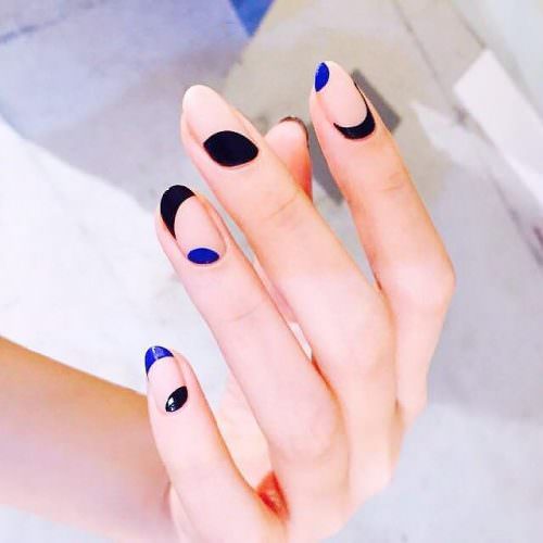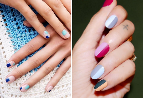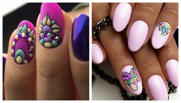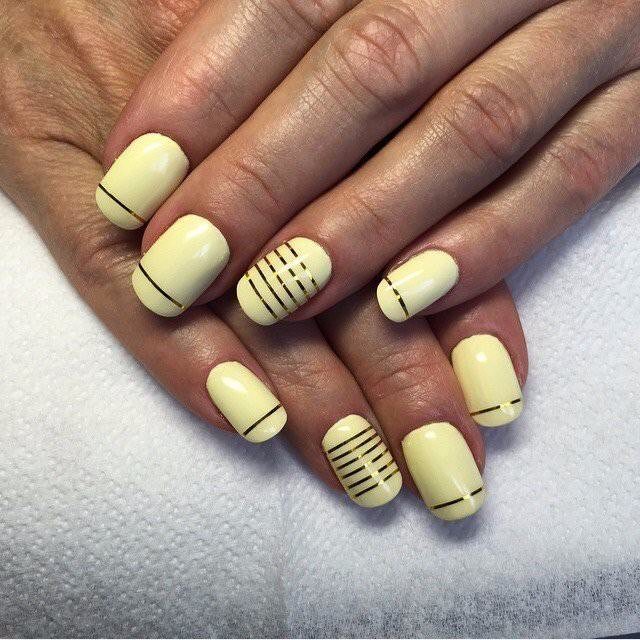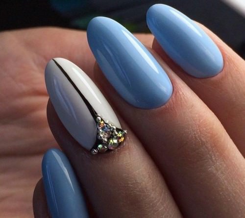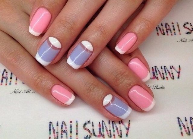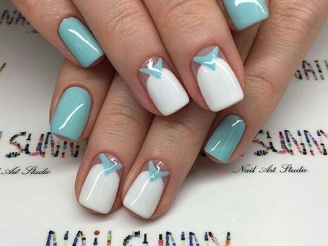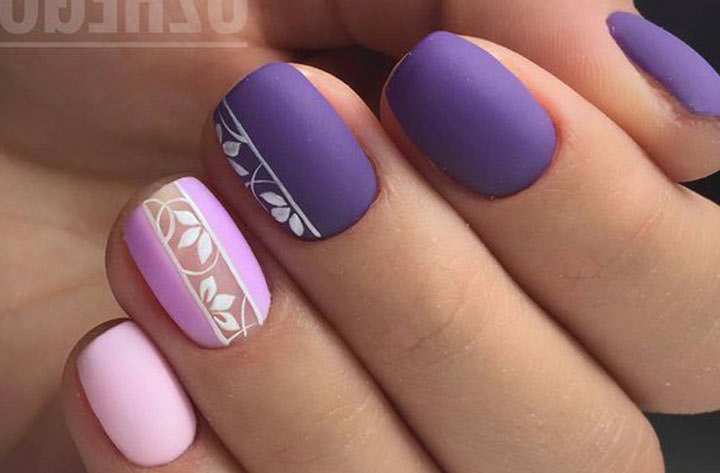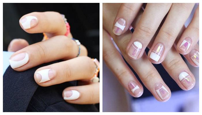 Lines of various shapes and sizes are in perfect harmony with summer manicure. The trend of the season will be a two-color manicure with thin geometric lines applied to one or two fingers. The basis for the figure can be a gradient of two shades. Beige-blue matte manicure looks great with delicate white lines.