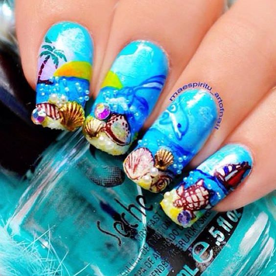 Summer, vacation by the sea, choose a beautiful summer manicure with marine motives.