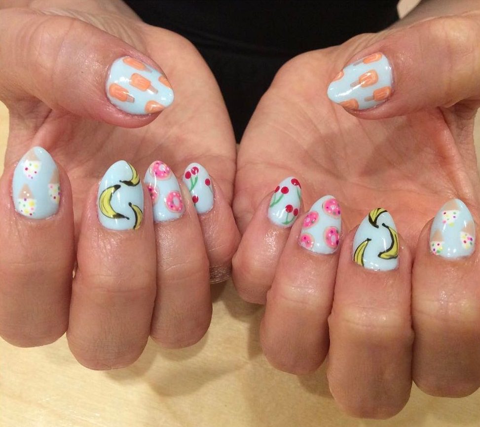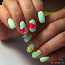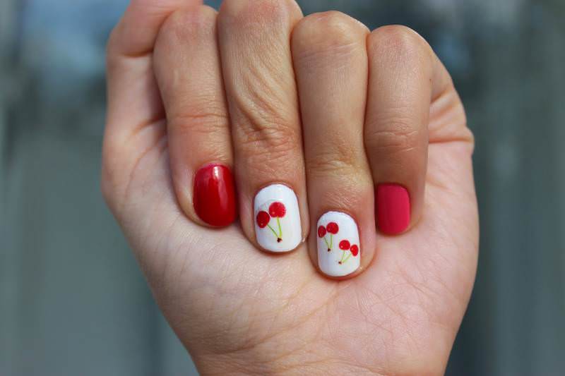 Summer manicure can not do without decor with fruits. With the help of modern techniques, the drawings look quite realistic. Juicy and sweet design with cherry on the nails is already popular. The theme of manicure with fruits this summer will receive the right to life.