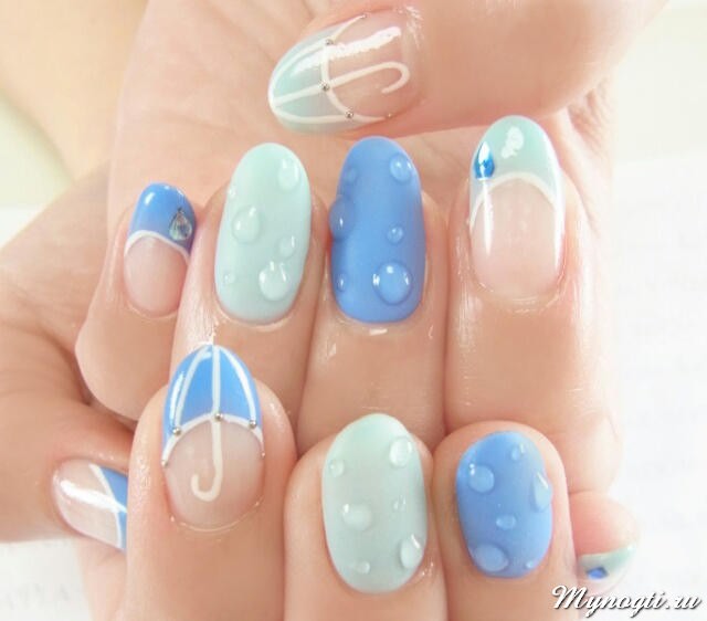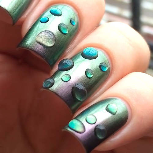 A manicure with frozen drops of rain that you just want to shake off the nail.This season, droplets are usually applied to the base of a manicure with the effect of a metallic or matte powdery shades.