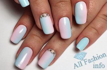 Do you prefer simple ideas, but are you tired of the monotony of manicure? A spectacular ombre on a light summer manicure, with a graduated transition from one color to another is what you need. Summer ombre manicure is spectacular and catchy, it is difficult to pass by such beauty. The trend of this summer will be a combination of gold with pastel shades. Summer manicure will be amazingly beautiful if the ombre is with the transition of white to green with the addition of gold. A combination of a gold ornament on a pink manicure or on a durable stylish shellac manicure will look great.