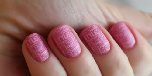 Pink manicure can be decorated with drawings using stamping - template drawing. The pattern can be contrasting - black or turquoise.
