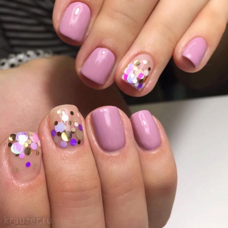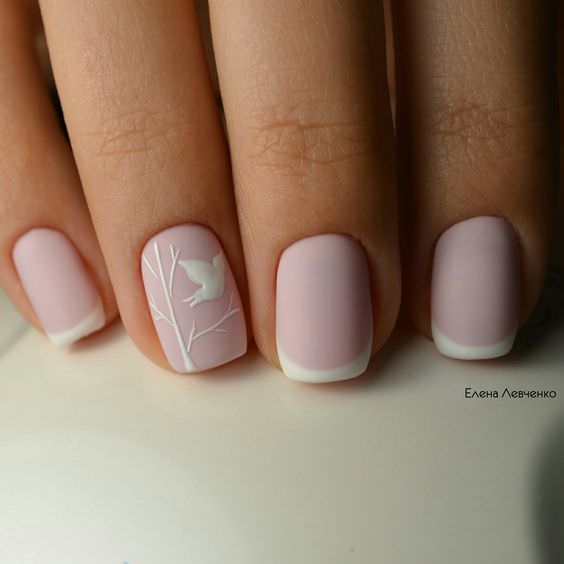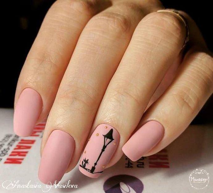 A plain manicure looks stylish on the hands, and a shade of smoky pink will add a fresh touch to it. In a plain manicure, one or two nails can be distinguished with a pattern or pattern, which diversifies and decorates a pink plain manicure.