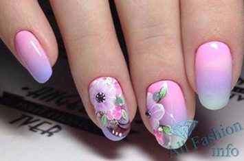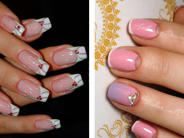 The universality of a gentle pink manicure is that it has no age restrictions, it is beautiful on the nails of mature women and young girls. Pink manicure acquires a delicate originality in combination with blue and white, warm and cold tones make it stylish.