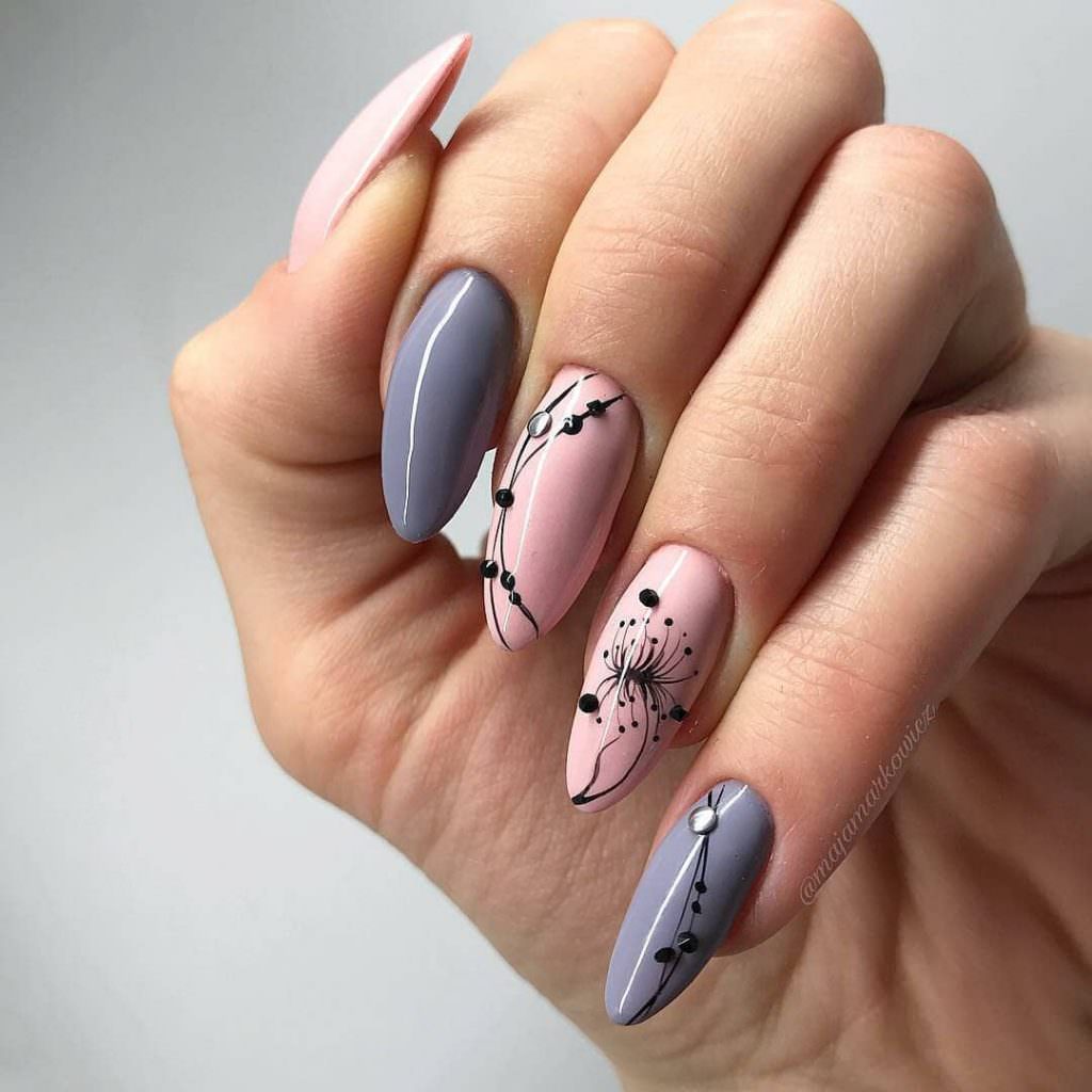 The trendy version of the pink manicure for the 2024 season is a combination of black and pink. With the help of contrasting colors of gel polish, an interesting design on the nails was created. It is very important to keep the proportion in colors.A combination of pink with white or blue looks very impressive on nails.