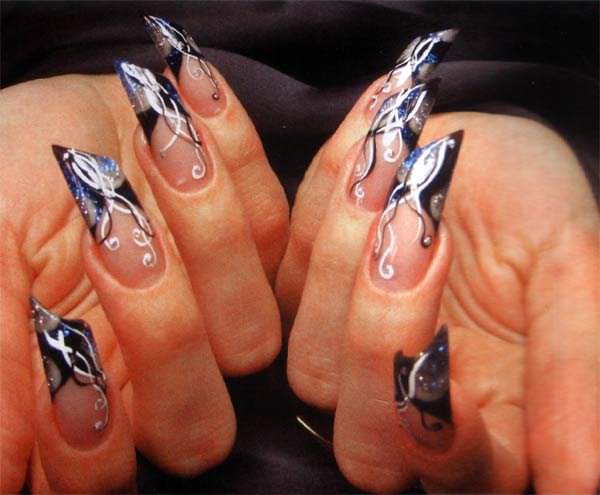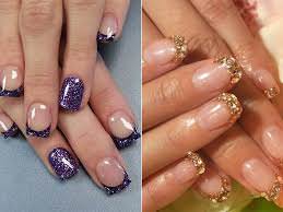 Original and interesting techniques that require creative thinking and imagination to decorate a smile. With the millennium technique, a smile is decorated with micropowers, sparkles or shiny varnish. Fan-french uses rhinestones, acrylics, foil, etc. to decorate the edge of the nail.