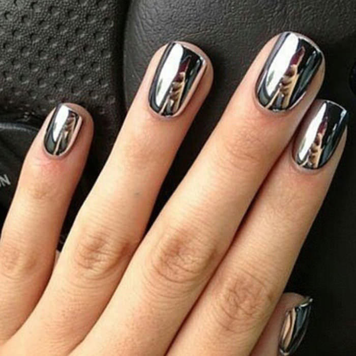 Imitation of a mirror coating, what could be cooler? The metallic shade of manicure, as well as the mirror manicure itself in the trend of popular nail designs. Various combinations of options adorn everyday manicure and fashionable festive.