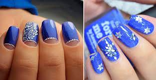 This season is very popular tender blue manicure. From soft blue to deep blue, with gel polish or ombre - it will be amazing on your nails. The trendy combination of bright blue with white will make your manicure chic.