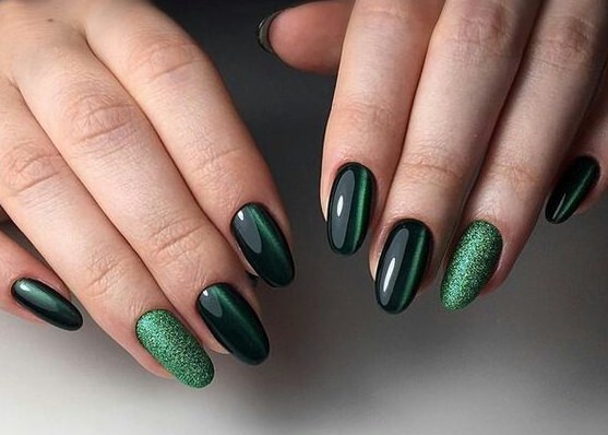 According to the Pantone Institute, the color of 2024 is recognized as green. Green shades on the nails in various performance techniques: ombre, rub, gel polish and the amazing cat eye of women will delight women of fashion this season.