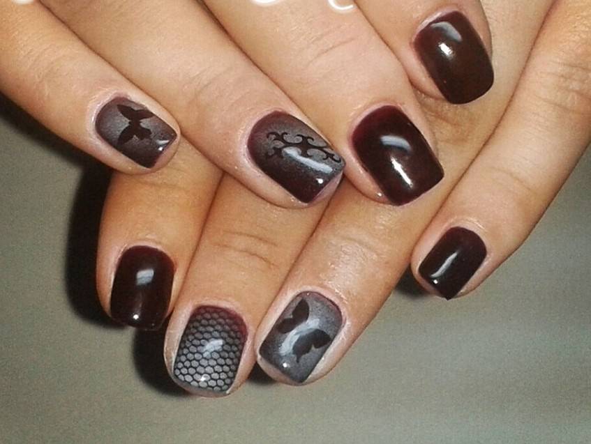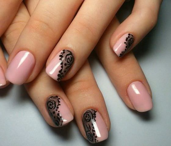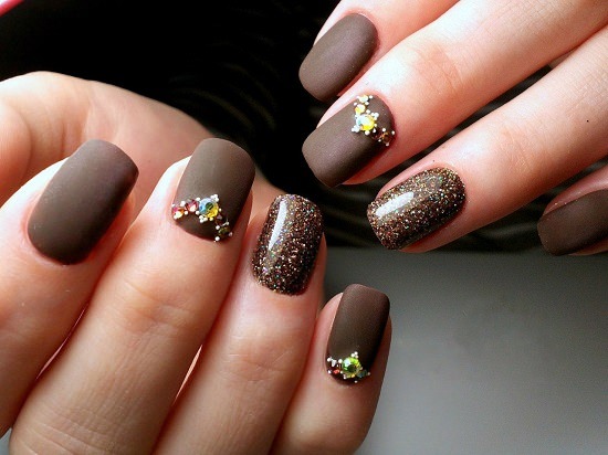 This season, stylists do not recommend volumetric designs, acrylic sculptures, novelty and style are in fashion. In addition to the usual glossy coating of nails, your nails covered with velvet, shimmer, lace, sand effect will look very fashionable and stylish. Short nails with gel can be decorated with original decor accessories: rhinestones, glitters, metal decor and more.